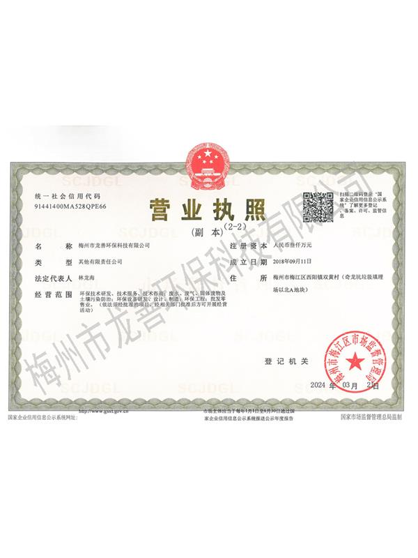 梅州市龍善環保科技有限公司為龍善環保股份有限公司(簡稱“龍善環保”)子公司。龍善環保于1995年12月成立,注冊資本為人民幣6,000萬元,總部位于深圳市南山區月亮灣大道2078號兆龍大樓16層。公司經生態環境部、廣東省生態環境廳、深圳市生態環境局、深圳市交通運輸委員會、深圳海事局等部門許可專業從事陸地和海洋環境保護產業的高科技民營企業,主要經營業務包括工業廢物收運、資源化利用和無害化處理處置、海洋船舶污油水接收和集中處理處置、突發環境事故清污應急處置等......